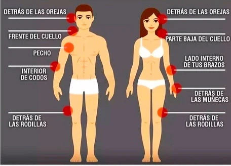 - Atomiza sobre puntos de pulso (cuello, muñecas, detrás de orejas).