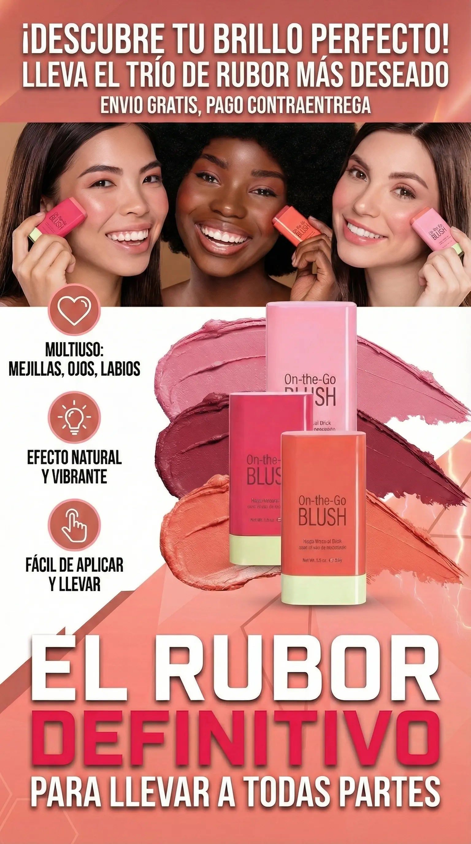 Es muy sencillo. Solo desliza la barra directamente sobre la zona deseada y difumina con toques suaves usando tus dedos, una esponja o una brocha. Tรบ controlas la intensidad: una pasada para un look natural de dรญa, o varias capas para un color mรกs intenso.
