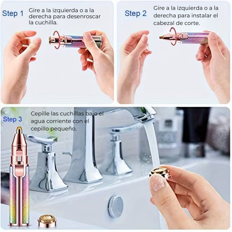 - Contenido del paquete: 1 Removedor, 2 Cabezales, 1 Cable de carga DC 2mm, 1 Cepillo