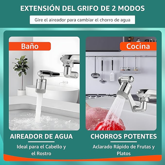 Descubra la ingeniería alemana aplicada a su cocina o baño. Este avanzado accesorio, diseñado con precisión , ofrece una combinación perfecta de funcionalidad y durabilidad. Con una rotación de 1080° y ajustes flexibles, optimiza el flujo de agua para hacer su vida más cómoda y eficiente.