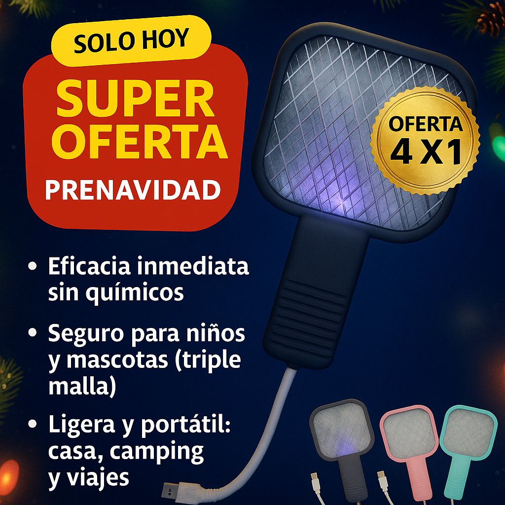 - Contenido: 2 raquetas atrapa moscas eléctricas.